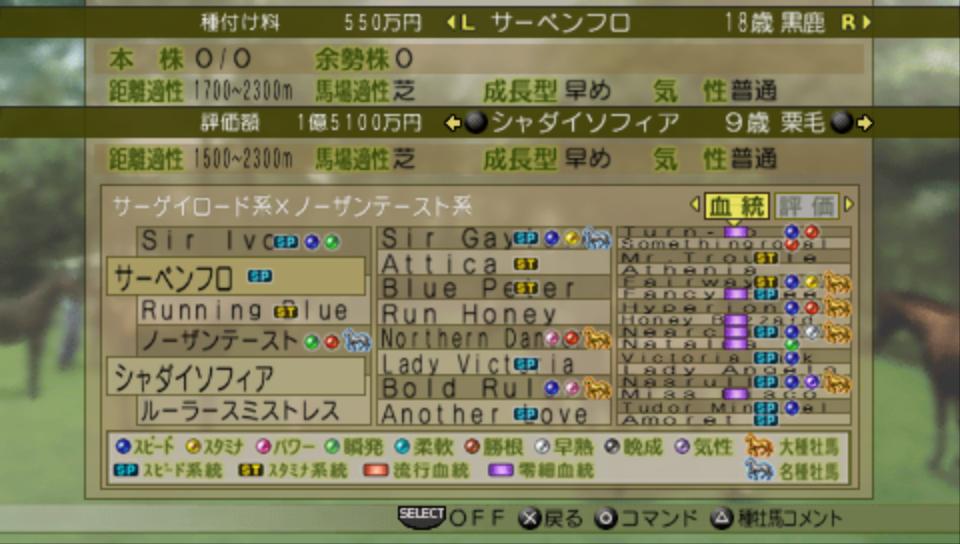 ゲーム開始直後にボールドルーラーが親系統に昇格するのでシャダイソフィアには金馬が4つあり銀馬は0です。